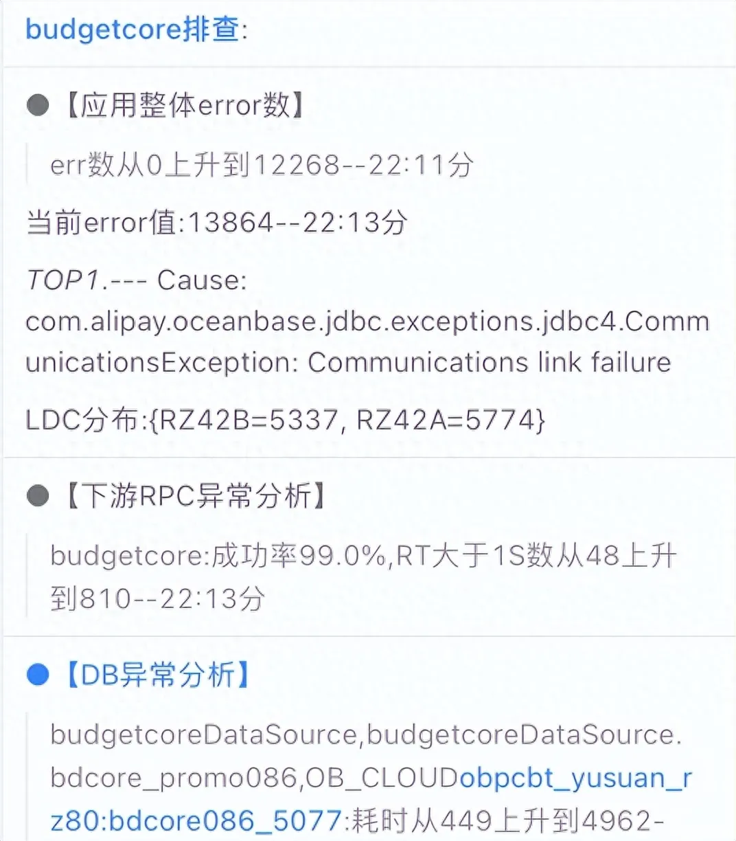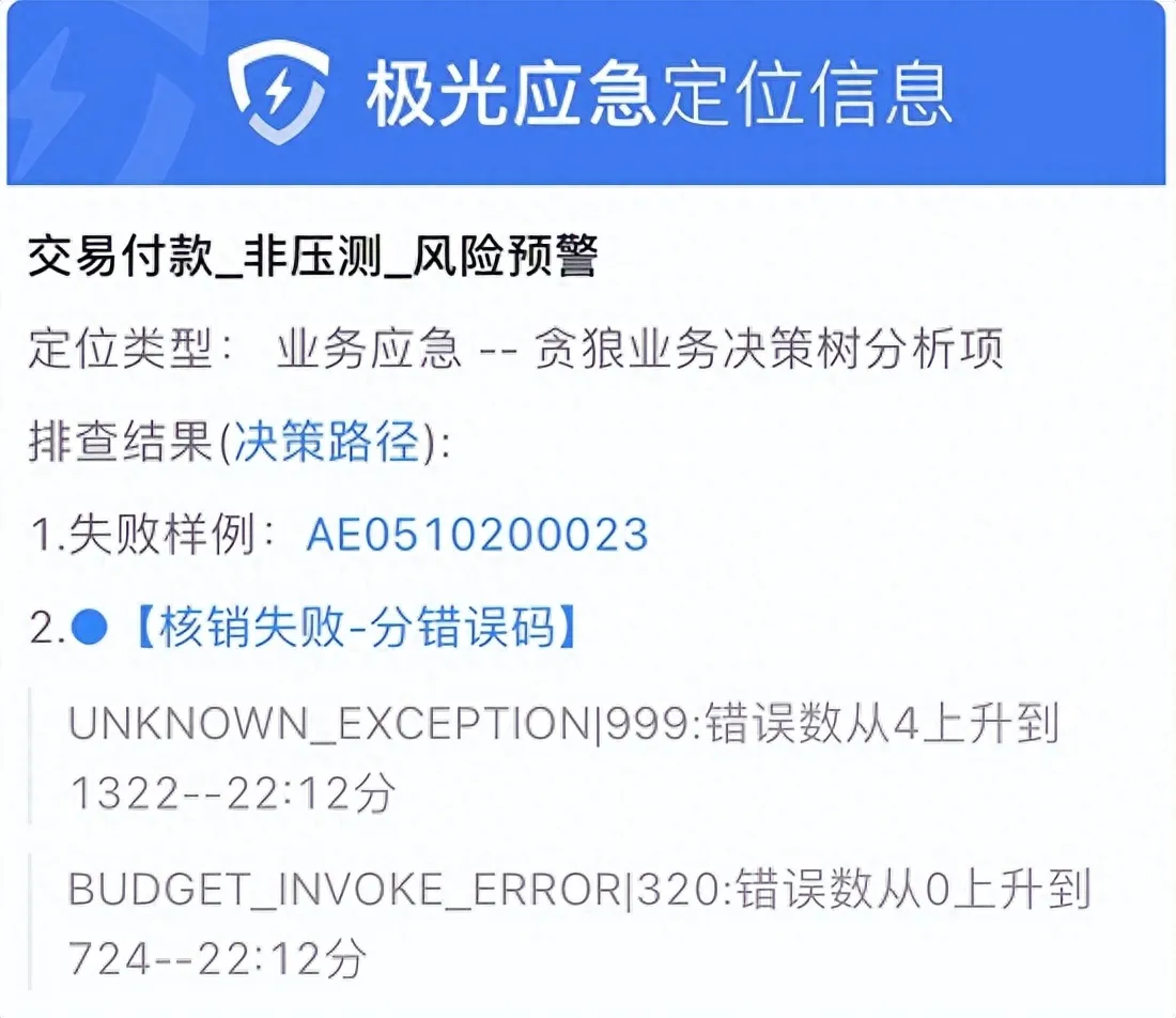 由于支付宝分布式系统规模庞大,一笔业务可能经过数十个系统,依赖的基础设施也非常复杂,涉及相关人员很多,当出现业务失败时,如何快速定位到具体的问题节点并协调相关人员助力 解决问题 ,就成为重要命题。因此产品基于监控指标和异常检测算法,在检测故障后在钉钉群自动提示、展示故障信息、展示辅助定位信息、组织相关人员进行相应的应急处理及善后,在部分场景实现了故障自愈。
