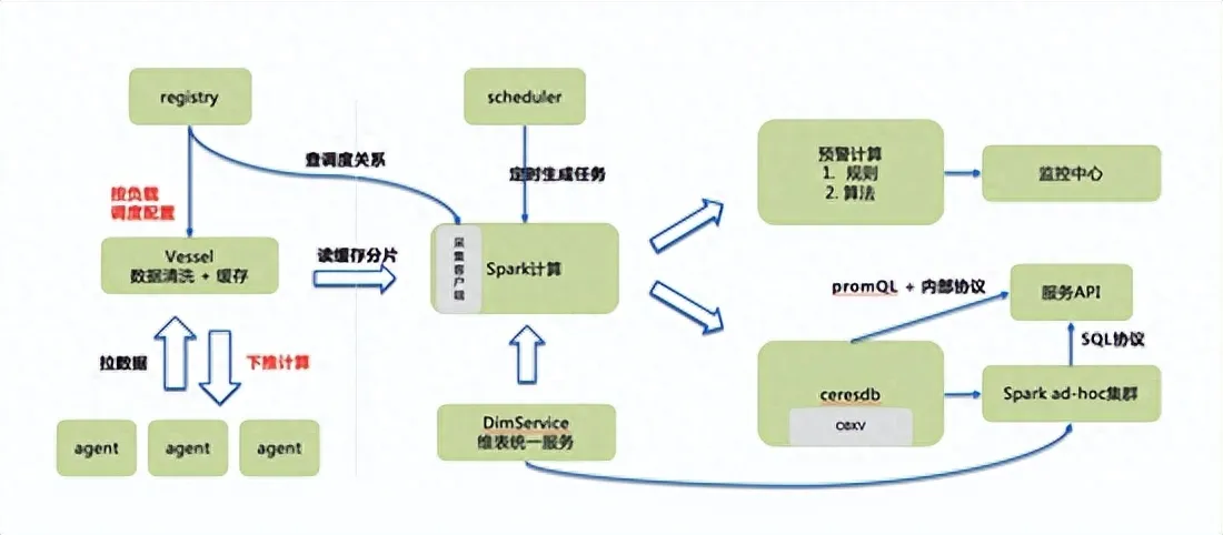在提升整体架构的性能水平上,重点的工作是做了算子下推。这个操作的核心思想都是就近计算,通过调度计算逻辑,减少数据的搬运。算子下推这个能力,经过自动化分析之后,甚至可能直接查询agent的数据;或者中心数据大规模聚合可以做到尽量分级提取,能在单机完成的聚合直接聚合给出部分结果再由中心聚合。