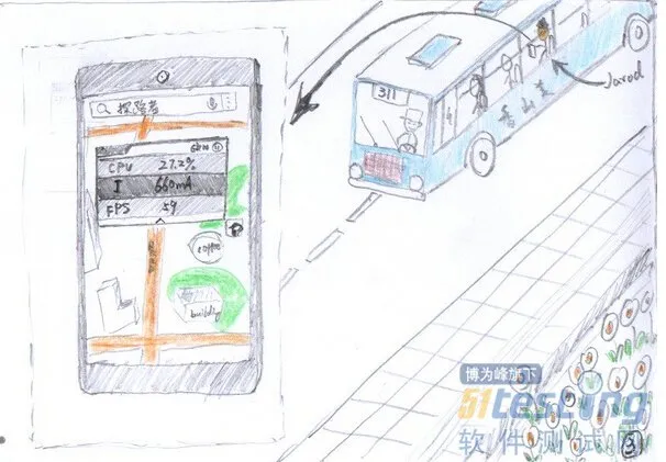 Allison如约而至,开始为Jarod介绍本次任务,并演示本次任务的目标:对Android应用“探路者”进行性能评估。“探路者”是Allison所在公司的新研发的产品,既有给用户展示的动态界面,也会常驻手机后台。其核心业务模式是将位置信息上报云端,结合云端数据进行复杂的计算后,将计算结果返回给手机。“除了CPU的消耗,还有流量的消耗和GPS模块的使用”,Jarod默默记下。