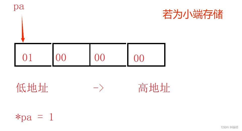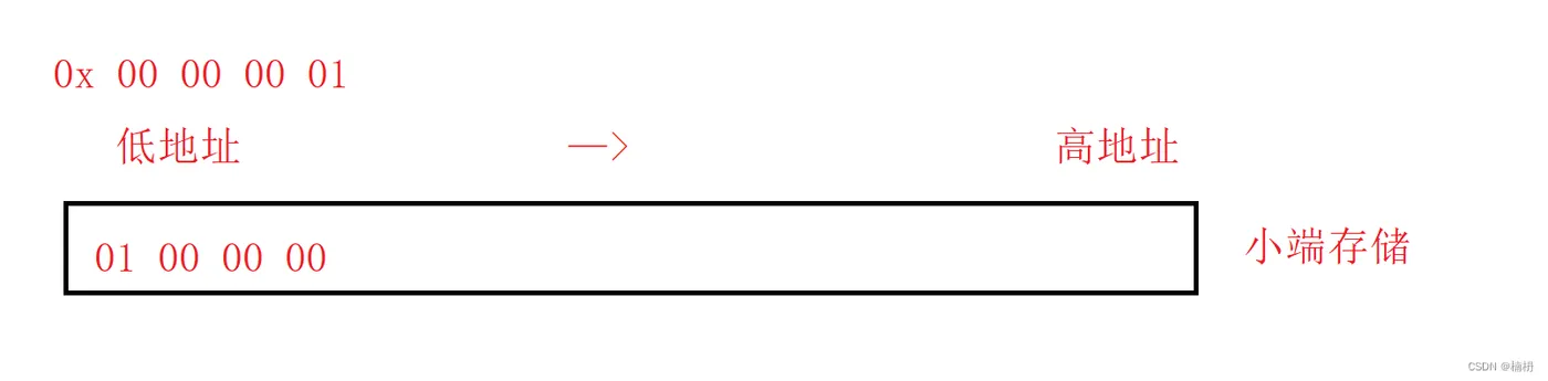 小端存储模式:数据的低位保存在内存的低地址中,数据的高位保存在内存的高地址中