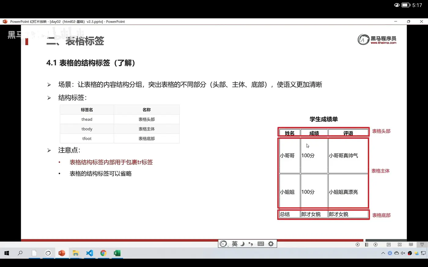4、表格的结构标签