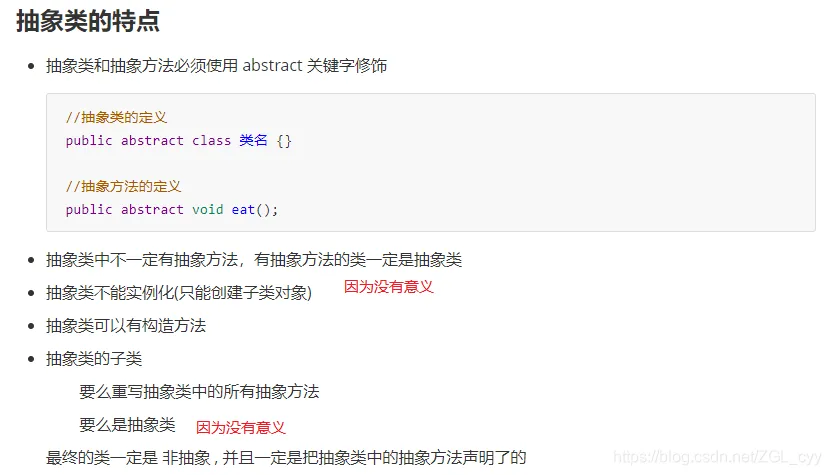 //抽象类的定义 public abstract class 类名 {} //抽象方法的定义 public abstract void eat();