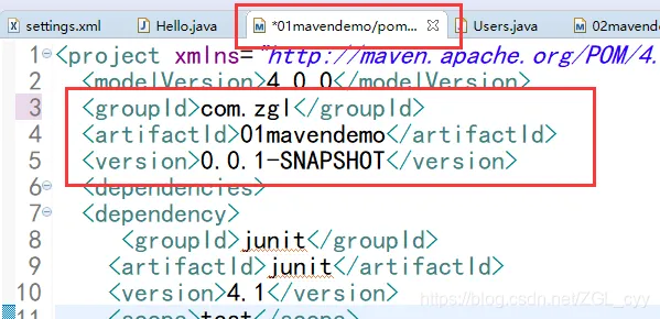 <project xmlns="http://maven.apache.org/POM/4.0.0" xmlns:xsi="http://www.w3.org/2001/XMLSchema-instance" xsi:schemaLocation="http://maven.apache.org/POM/4.0.0 http://maven.apache.org/xsd/maven-4.0.0.xsd"> <modelVersion>4.0.0</modelVersion> <groupId>com.bjsxt</groupId> <artifactId>01mavendemo</artifactId> <version>0.0.1-SNAPSHOT</version> <dependencies> <dependency> <groupId>junit</groupId> <artifactId>junit</artifactId> <version>4.1</version> <scope>test</scope> </dependency> </dependencies> </project>