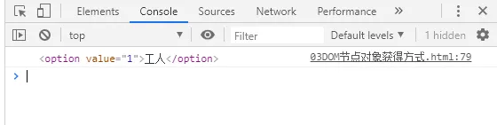 <!DOCTYPE html> <html> <head> <meta charset="utf-8"> <title></title> <script> /************直接获得节点对象的方式***************/ function demo1(){ //id方式直接获得--单个对象 var username=window.document.getElementById("username"); alert(username); } function demo2(){ //通过标签名称获得元素对象 获得的是多个对象 var inp=document.getElementsByTagName("input"); alert(inp[2]); } function demo3(){ //通过name属性获得 var inp=document.getElementsByName("hobby"); alert(inp.length); } /*********间接获得元素对象的方式***************/ function demo4(){ //获得父节点 var professional=document.getElementById("professional"); //获得子元素 注意:空白的文档也是一个子节点 var child= professional.childNodes; console.log(child); } function demo5(){ var p2=document.getElementById("p2"); //获得父节点 var parent= p2.parentNode; console.log(parent); } function demo6(){ var p2=document.getElementById("p2"); //获得下一个节点包含空白的文档 // var next=p2.nextSibling.nextSibling; //获得下一个节点不包含空白的文档 // var next=p2.nextElementSibling; //获得上一个节点对象包含空白文档 // var up=p2.previousSibling.previousSibling; //获得上一个节点对象不包含空白文档 var up=p2.previousElementSibling; console.log(up); } </script> </head> <body onload="demo6()"> <form action="" id="form1"> 用户名:<input type="text" name="username" id="username" value="请输入姓名" ><br /> 密码: <input type="password" name="pwd" id="pwd" /><br /> 爱好: <input type="checkbox" name="hobby" value="music" />音乐 <input type="checkbox" name="hobby" value="sports" />体育 <input type="checkbox" name="hobby" value="art"/>美术<br /> 职业: <select name="professional" id="professional"> <option value="1">工人</option> <option value="2" id="p2">农民</option> <option value="3">解放军</option> <option value="4">知识分子</option> </select><br /> <input type="button" value="提交"/> </form> </body> </html>
