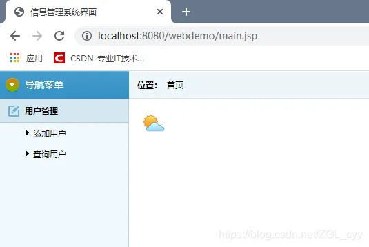 <%-- Created by IntelliJ IDEA. User: Administrator Date: 2020/7/6 0006 Time: 12:11 To change this template use File | Settings | File Templates. --%> <%@ page contentType="text/html;charset=UTF-8" language="java" %> <html> <head> <meta http-equiv="Content-Type" content="text/html; charset=utf-8" /> <title>信息管理系统界面</title> </head> <frameset rows="*,31" cols="*" frameborder="no" border="0" framespacing="0"> <frameset cols="187,*" frameborder="no" border="0" framespacing="0"> <frame src="left.jsp" name="leftFrame" scrolling="No" noresize="noresize" id="leftFrame" title="leftFrame" /> <frame src="index.jsp" name="rightFrame" id="rightFrame" title="rightFrame" /> </frameset> <frame src="footer.jsp" name="bottomFrame" scrolling="No" noresize="noresize" id="bottomFrame" title="bottomFrame" /> </frameset> <noframes><body> </body></noframes> </html>