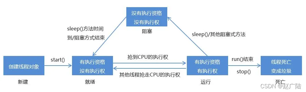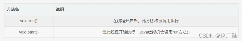 start() :启动线程;然后由 JVM 调用此线程的 run() 方法