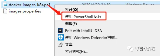 然后在相同目录下,创建拉取镜像的脚本文件docker-images-k8s.ps1:(docker for Mac该文件不同)
