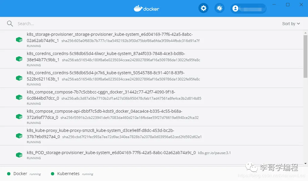 稍等一片二片...好多片刻后即可完成,之后,在打开docker for Windows,即可看到docker和Kubernetes都运行起来了。