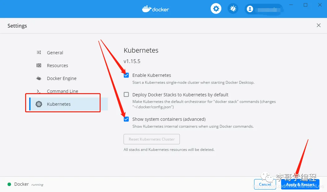到这里,我们已经完成了Docker for Windows的安装,从图中可以看到,它对应的是Kubernetes的1.15.5版本,那么,我们下一步就该安装Kubernetes了。