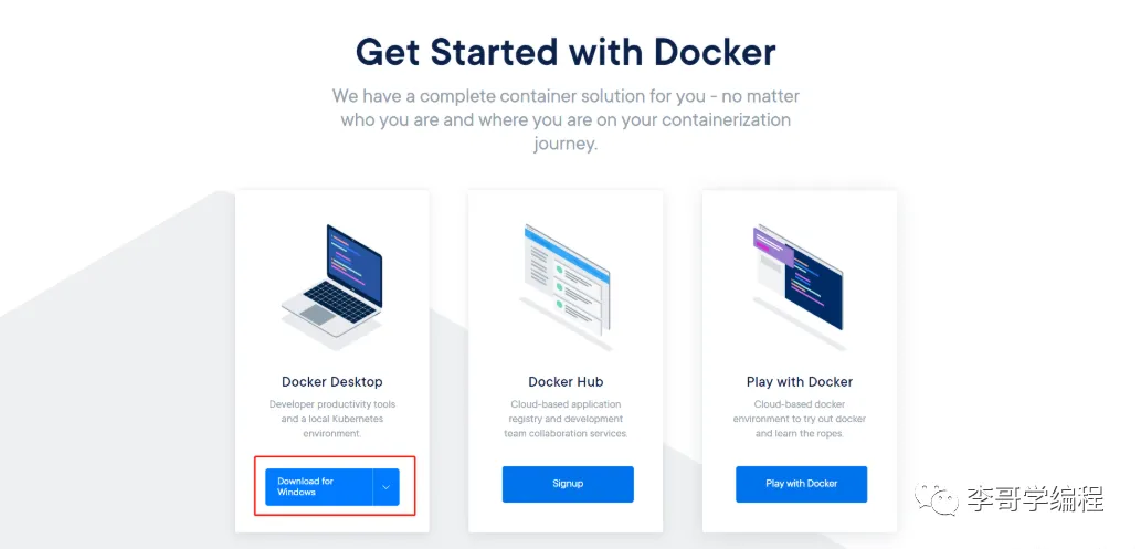 浏览器输入https://www.docker.com/get-started,嗯,没错,回车后就是如下页面。