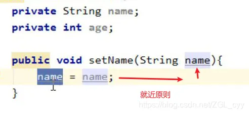 1.当参数或局部变量与成员变量同名时选择就近原则