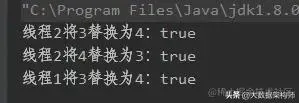package com.qidian.atom; import java.util.concurrent.TimeUnit; import java.util.concurrent.atomic.AtomicInteger; /** * @author 戴着假发的程序员 */ public class Test2 { // 原始值为 3 private static AtomicInteger ai = new AtomicInteger(3); public static void main(String[] args) { // 启动线程1 new Thread(){ public void run() { // 取出原来的值 int i = ai.get();// 这个值作为预期值 //打个盹 try { TimeUnit.MICROSECONDS.sleep(50); } catch (InterruptedException e) { e.printStackTrace(); } // 使用cas替换 boolean b = ai.compareAndSet(i, 4); System.out.println("线程1将3替换为4:"+b); } }.start(); // 再来一个线程 new Thread(){ public void run() { // 取出原来的值 int i = ai.get(); // 将3替换为4 boolean b = ai.compareAndSet(i, 4); System.out.println("线程2将3替换为4:"+b); // 再次将4替换为3 b = ai.compareAndSet(4, 3); System.out.println("线程2将4替换为3:"+b); } }.start(); } }