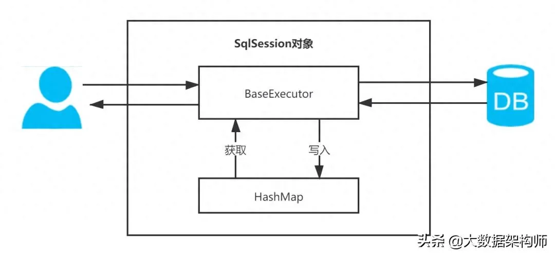 一级缓存是BaseExecutor中的一个成员变量localCache(对HashMap的一个简单封装),因此一级缓存的生命周期与SqlSession相同,如果你对SqlSession不熟悉,你可以把它类比为JDBC编程中的Connection,即数据库的一次会话。