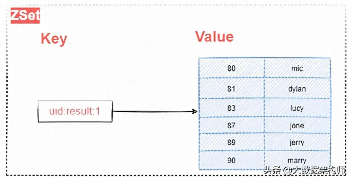- dict,字典类型, 其中key表示zset的成员数据,value表示zset的分值,用来支持O(1)复杂度的按照成员取分值的操作