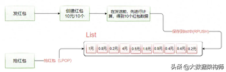 在发红包的场景中,假设发一个10元,10个红包,需要保证抢红包的人不会多抢到,也不会少抢到,这种情况下,可以根据图2-25所示去实现。