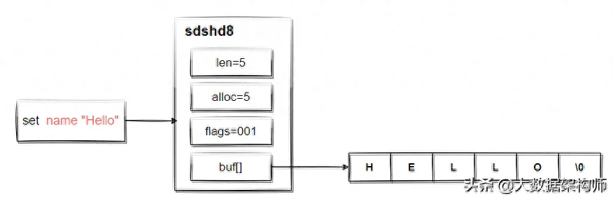 对sds结构有一个简单认识以后,我们如果通过set创建一个字符串,那么也就是会创建一个sds来存储这个字符串信息,那么这个过程是怎么样的呢?