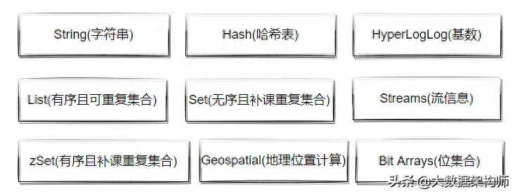 如图所示,Redis中提供了9种不同的数据操作类型,他们分别代表了不同的数据存储结构。