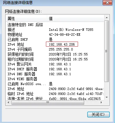 让我的电脑也连接到手机热点,查看下其IP地址: