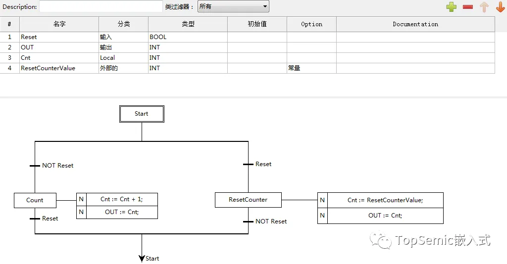(2) 设备端的软件,而设备端的软件又分为runtime system(后称RTS)和用户程序(后称POU)两部分内容。RTS是PLC设备端的核心,主要有以下几个作用: