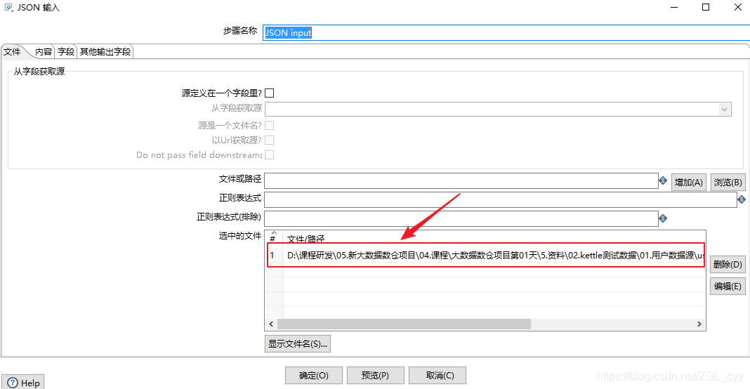 1、拖动 输入/JSON Input组件 ,输出/表输出,连接两个组件