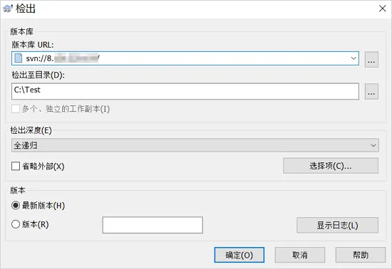 版本库URL:本实验中直接指定到版本库启动的SVN,svnserve只为svnrepos这一个版本库工作,因此版本库URL格式为svn://云服务器ECS弹性IP/。您可在云产品资源列表中查看云服务器的ECS弹性IP。