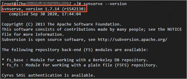 返回结果如下,您可查看到SVN版本号为1.7.14。