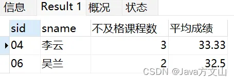 12.查询两门及其以上不及格(低于60分)课程的同学的学号,姓名及其平均成绩