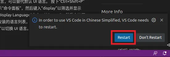 1.3 安装成功后,选择下方的 Restart 重启vscode。