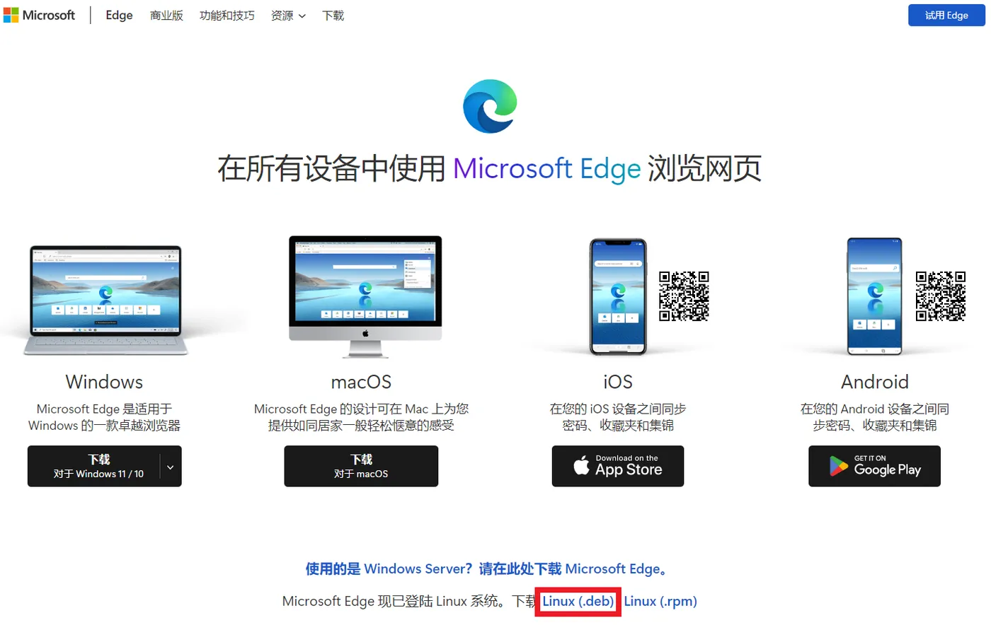edge的下载地址为https://www.microsoft.com/zh-cn/edge/download 同样选择 .deb 格式下载。