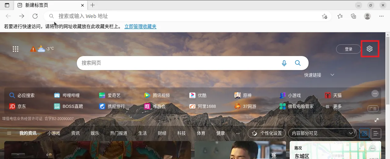 3.2 默认的edge浏览器界面包含了过的信息提示,不利于开发人员使用,因此我们需要关闭这些提示。单击页面中的页面设置按钮。