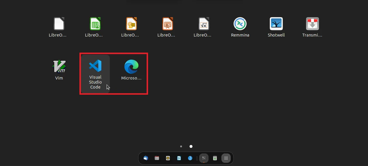 安装完毕后,在 显示更多应用程序 即可看到vscdoe和edge的应用图标