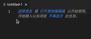 2.2 选择成功后,文本编辑区会建立一个未命名文件,默认情况下vscode会根据文本文件的内容,自动的推导这个文件所属的编程语言和类型。