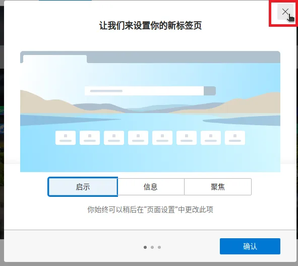 3.1 进入edge浏览器后,会弹出配置向导页面,此时我们可以关闭向导手动进行配置。