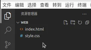 2.9 输入完成后选择菜单 文件 -> 保存 输入文件名style.css 。保存完毕后的结果如下。我们可以看到vscode为不同类型的文件设置了相应的图标。