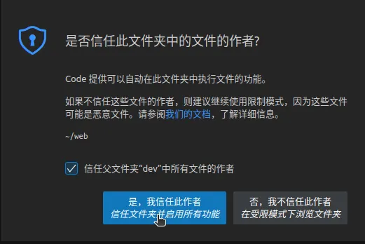 1.6 勾选 信任父文件夹... 并单击是,我信任此作者... 。