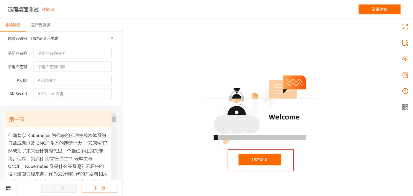 1.在实验室页面,单击创建资源。