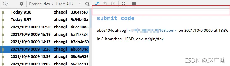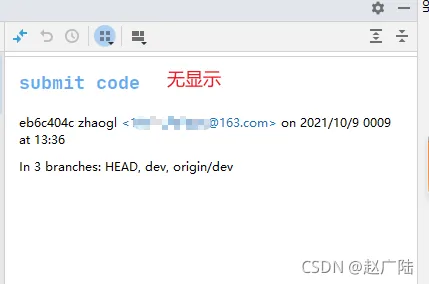 但是,这次idea只是显示提交记录细节,而不显示提交批次对应代码,这样,就无法知道每次提交对应的分别时那些文件,如下图