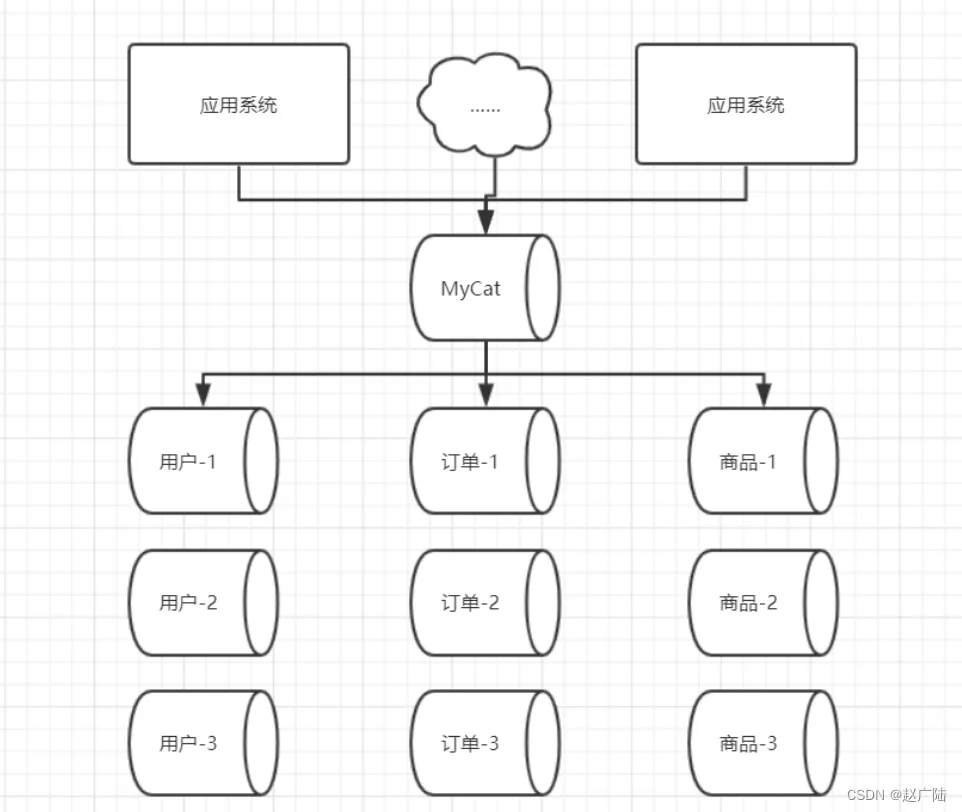 - 多租户应用,每个应用一个数据库,应用只连接MyCat,程序本身不需要改造;