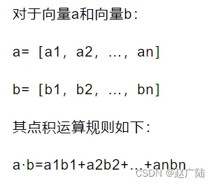 这个过程中要求向量a和向量b的维度相同。向量点积的结果是一个标量,也就是一个数值。