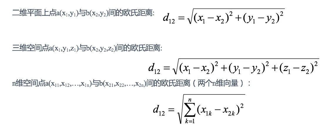 两个样本的距离可以通过如下公式计算,又叫欧式距离 ,关于距离公式会在后面进行讨论