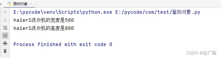 print(f'haier1洗⾐机的宽度是{haier1.width}') print(f'haier1洗⾐机的高度是{haier1.height}')