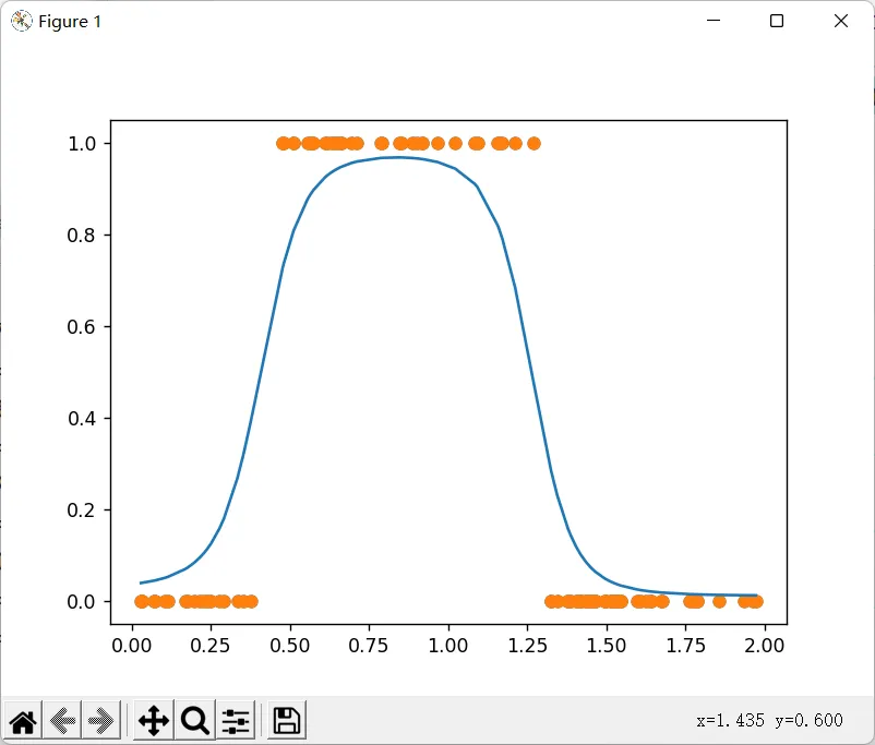 import dataset import plot_utils from keras.models import Sequential from keras.layers import Dense from keras.optimizers import SGD m = 100 X, Y = dataset.get_beans2(m) plot_utils.show_scatter(X, Y) model = Sequential() model.add(Dense(units=2, activation='sigmoid', input_dim=1)) model.add(Dense(units=1, activation='sigmoid')) # 调整学习率为0.05 model.compile(loss='mean_squared_error', optimizer=SGD(lr=0.05), metrics=['accuracy']) model.fit(X, Y, epochs=5000, batch_size=10) pres = model.predict(X) plot_utils.show_scatter_curve(X, Y, pres)