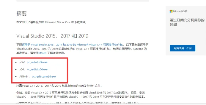 如果遇到ddl缺失问题,我们只需要去微软的官网下载一个Visual C++软件包:参考链接