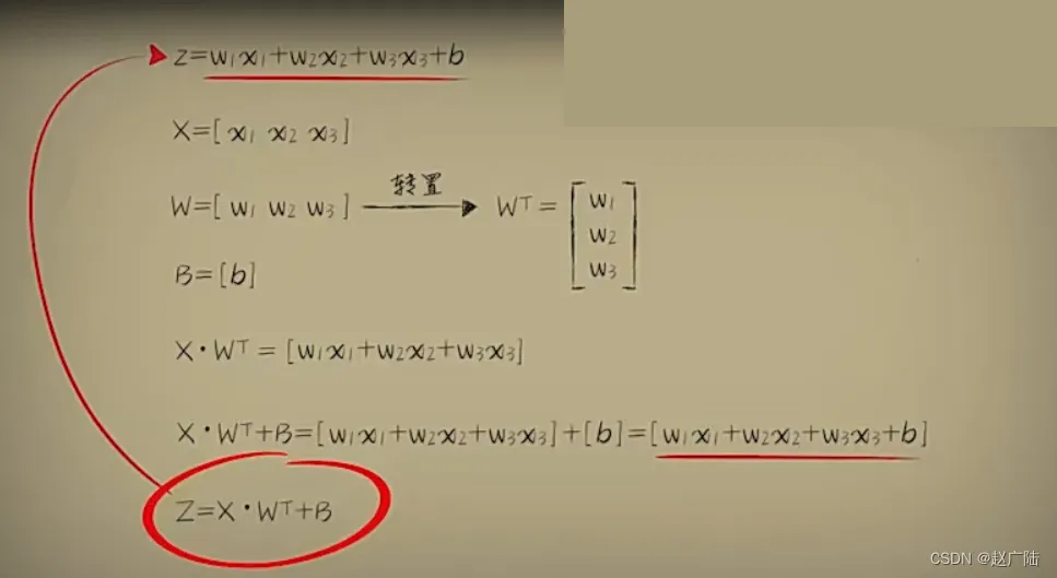 在之前我们都是将每个元素做运算,这样做看着费时费力,现在我们从万物皆向量的角度重新看待这个问题,用向量的运算去表示线性函数。