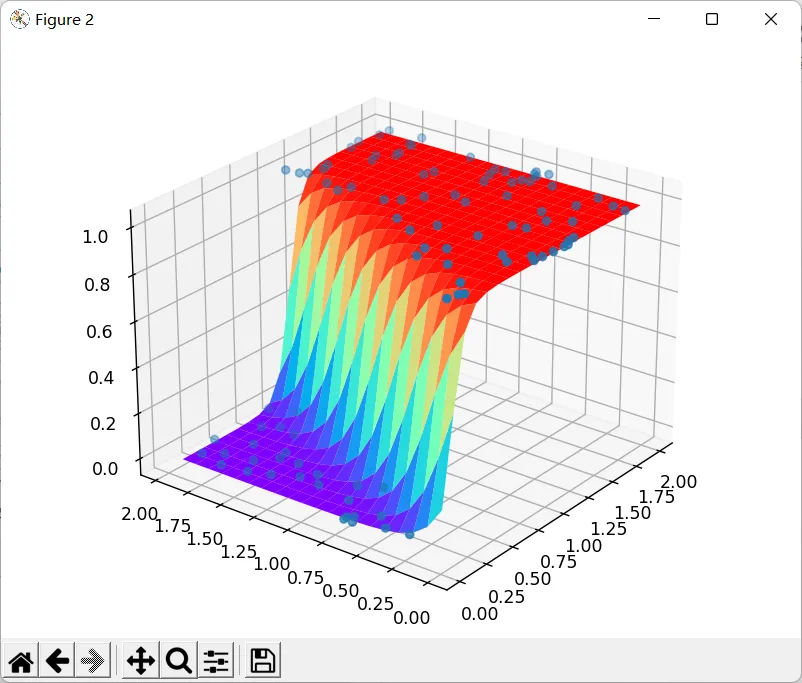 import numpy as np import dataset import plot_utils m = 100 xs, ys = dataset.get_beans(m) print(xs) print(ys) plot_utils.show_scatter(xs, ys) w1 = 0.1 w2 = 0.2 b = 0.1 ## [[a,b][c,d]] ## x1s[a,c] ## x2s[b,d] ## 逗号,区分的是维度,冒号:区分的是索引,省略号… 用来代替全索引长度 # 在所有的行上,把第0列切割下来形成一个新的数组 x1s = xs[:, 0] x2s = xs[:, 1] # 前端传播 def forward_propgation(x1s, x2s): z = w1 * x1s + w2 * x2s + b a = 1 / (1 + np.exp(-z)) return a plot_utils.show_scatter_surface(xs, ys, forward_propgation) for _ in range(500): for i in range(m): x = xs[i] ## 豆豆特征 y = ys[i] ## 豆豆是否有毒 x1 = x[0] x2 = x[1] a = forward_propgation(x1, x2) e = (y - a) ** 2 deda = -2 * (y - a) dadz = a * (1 - a) dzdw1 = x1 dzdw2 = x2 dzdb = 1 dedw1 = deda * dadz * dzdw1 dedw2 = deda * dadz * dzdw2 dedb = deda * dadz * dzdb alpha = 0.01 w1 = w1 - alpha * dedw1 w2 = w2 - alpha * dedw2 b = b - alpha * dedb plot_utils.show_scatter_surface(xs, ys, forward_propgation)