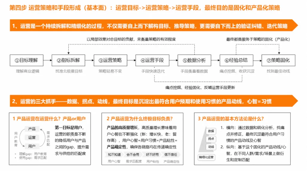 3.4 运营策略和手段的形成:运营目标->运营策略->运营手段,最终目的是固化和产品化策略