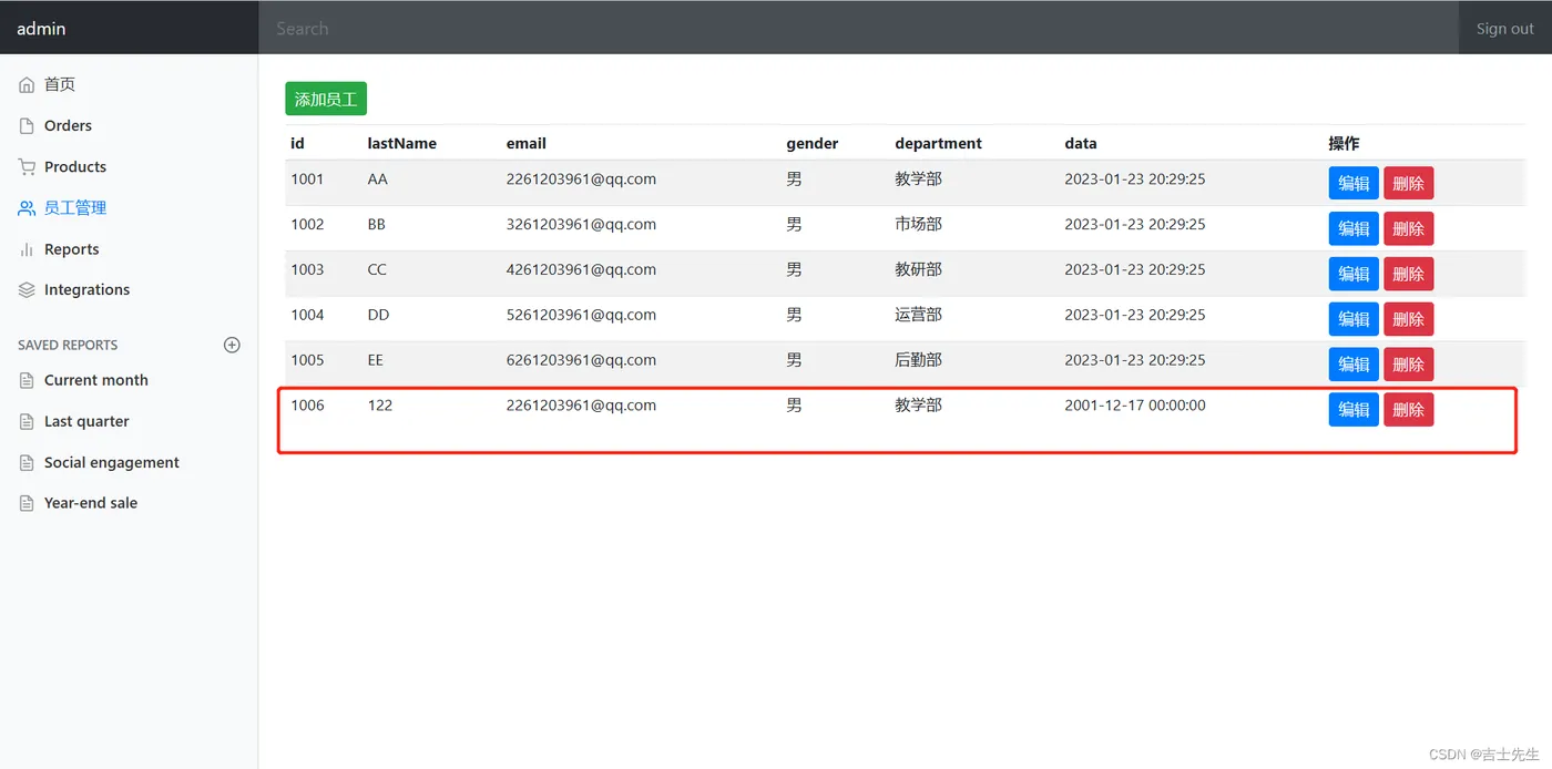 // 这里是进行实际的业务操作 post提交 @PostMapping("/emp") public String add(){ // 重定向的时候,格式是死的,不能随意添加空格,否则会报404页面 return "redirect:/emps"; }