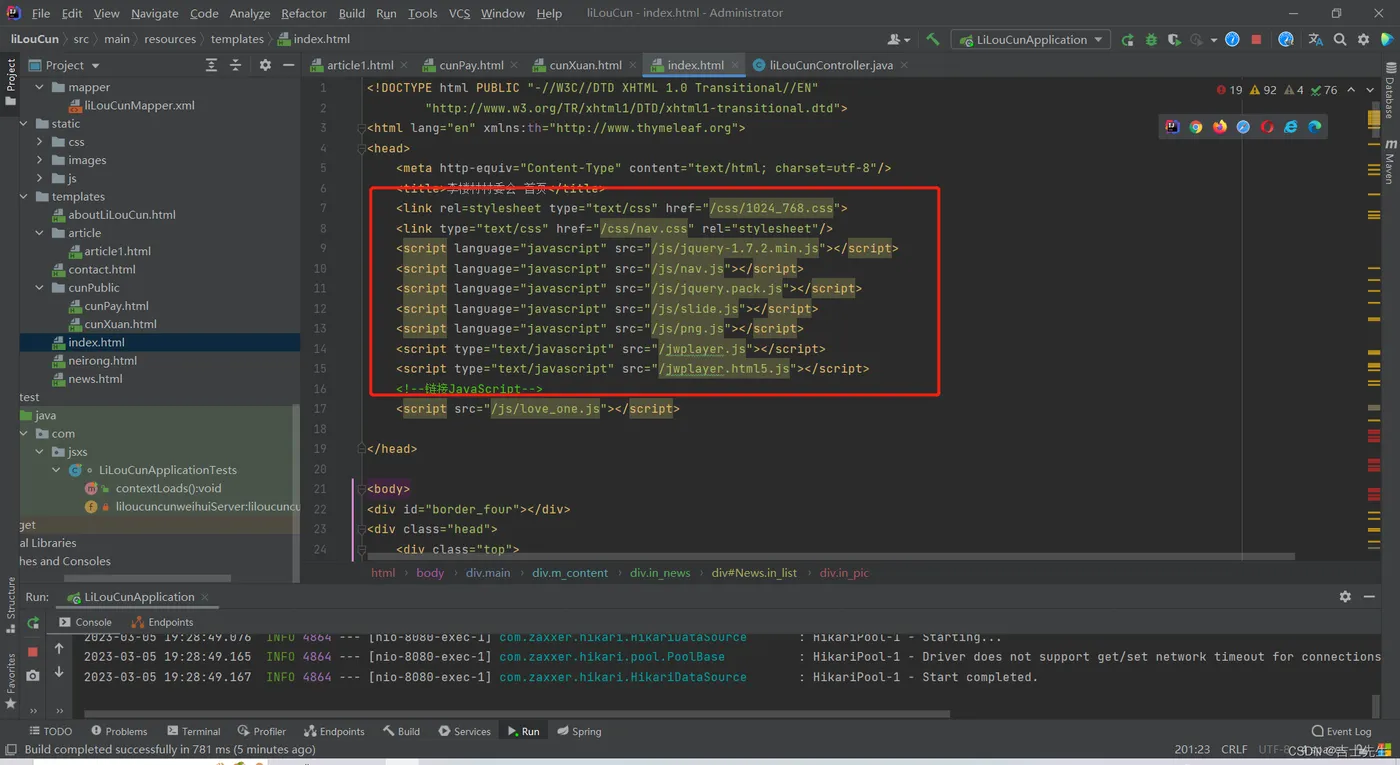 - 假如说在templates包中创建另一个news包,那么静态资源前面需要加上 “/“templates下的html页面也需要添加”/”