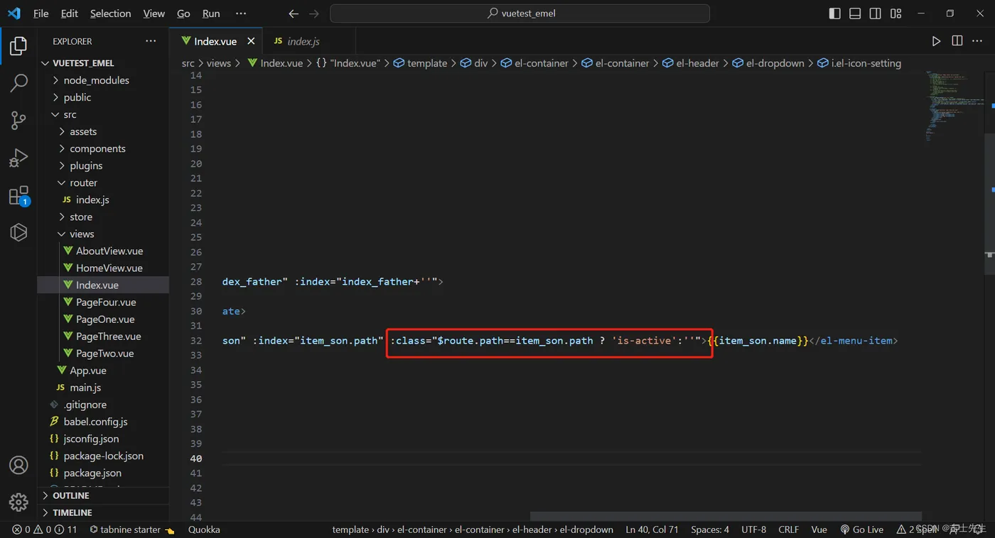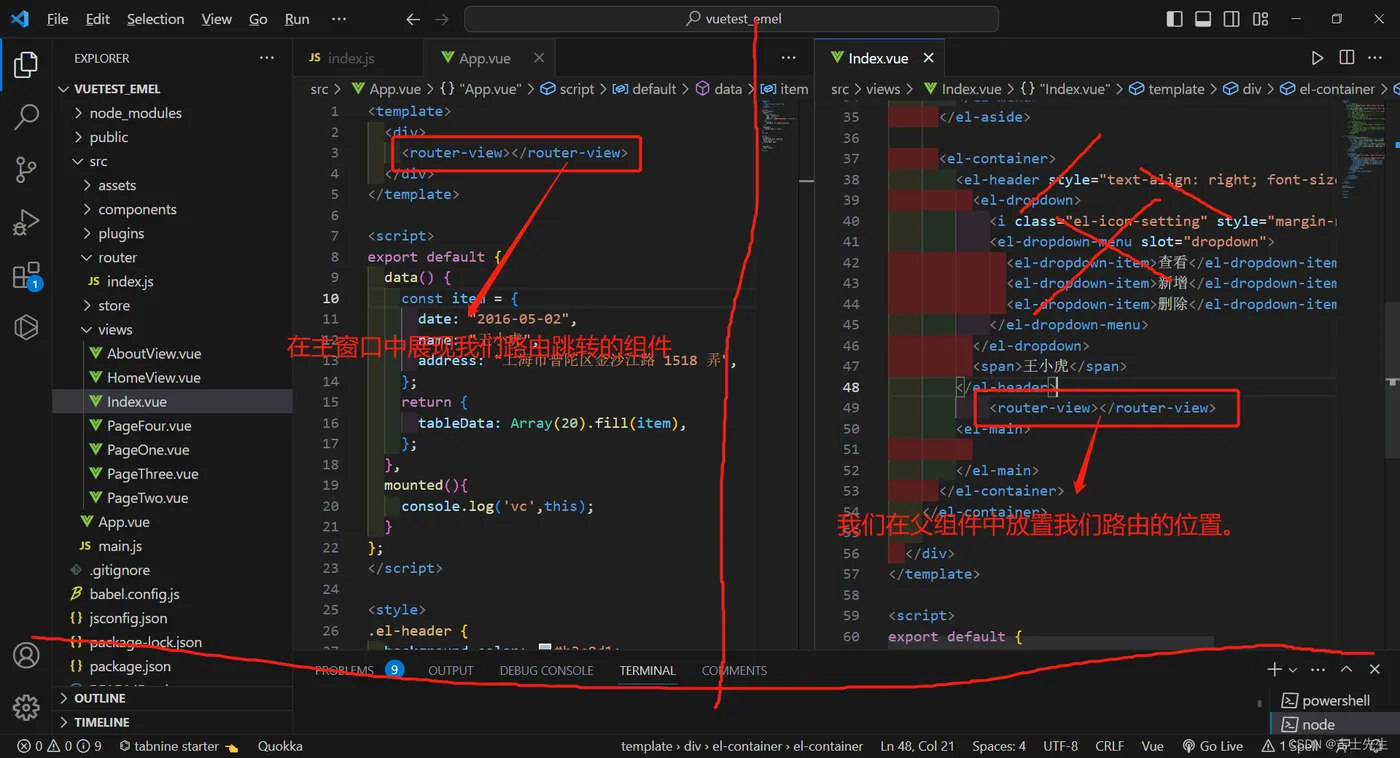 1.我们将App.vue的框架抽出来生成新的Index.vue这个组件如下: