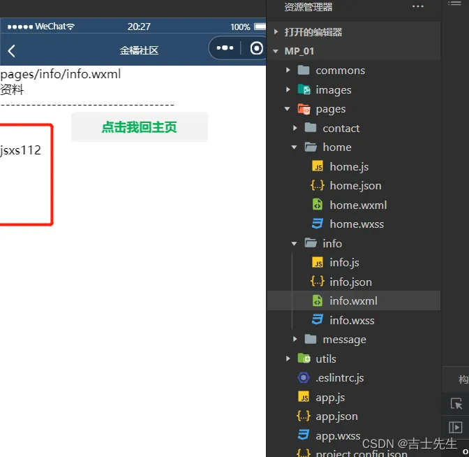 <navigator url="/pages/info/info?name=jsxs&age=20" open-type="navigate">声明式导航到 info 页面</navigator>